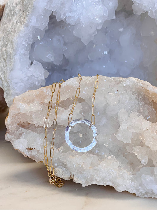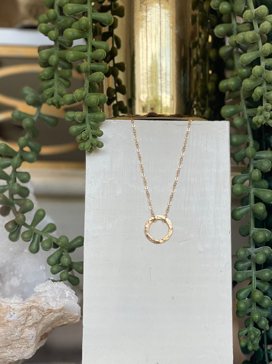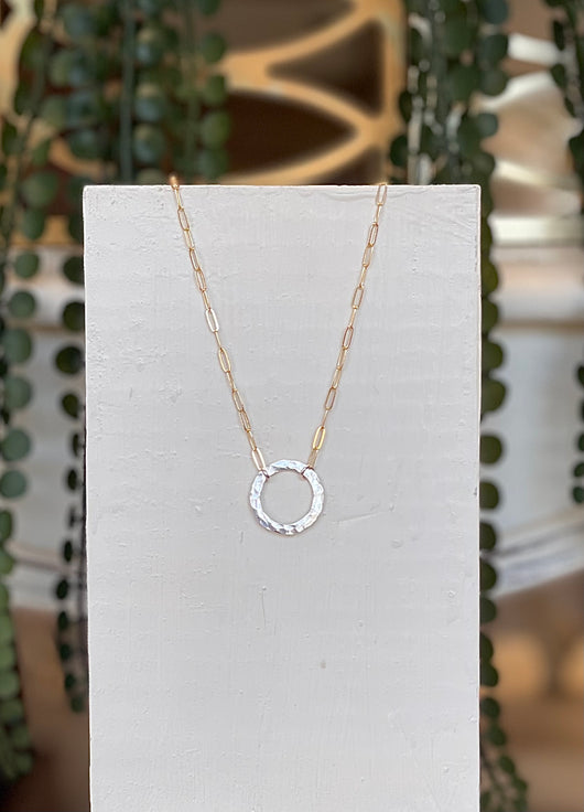 Made from scratch hammered infinity circle on your choice of link chain or paperclip chain.